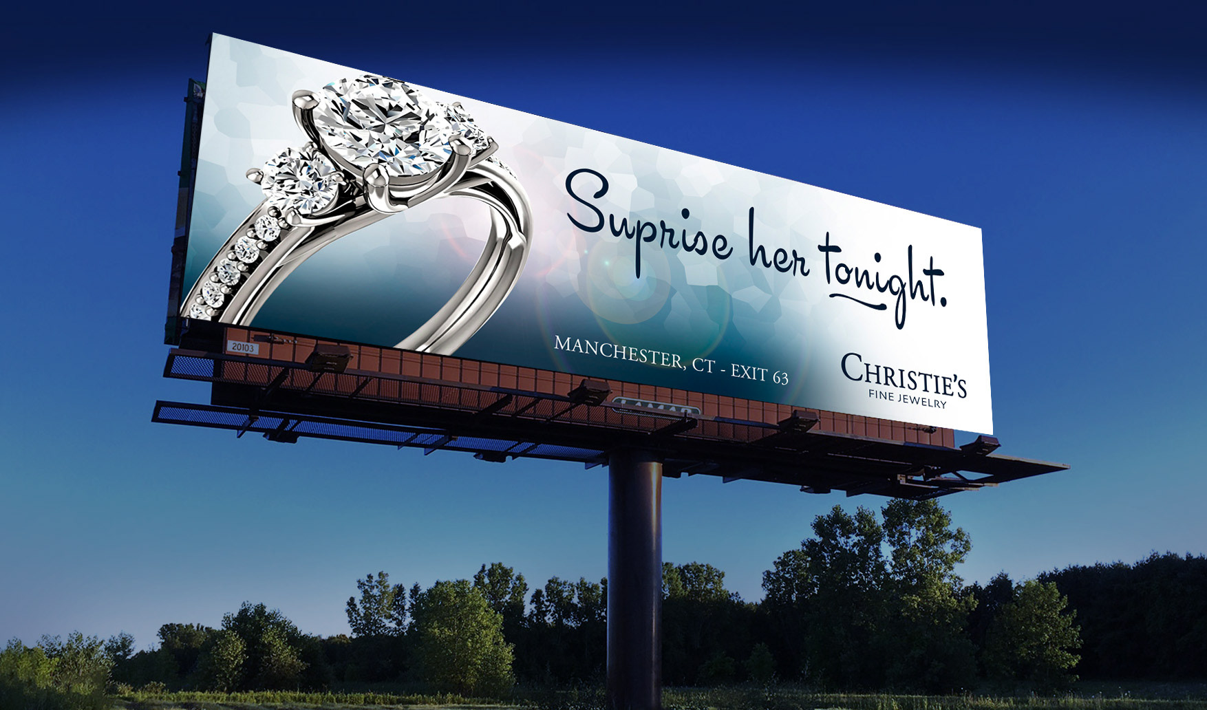 Christie's Jewelry needed a mock-up of a billboard advertisement. They supplied the copy, images and I needed to pull it all together. I used a background that complemented fine jewelry.